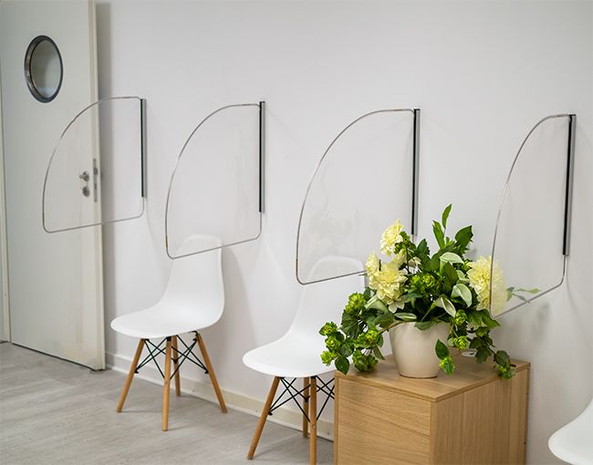 Distaflex-Module reduzieren die Gefahr einer Tröpfcheninfektion deutlich. Sie sind leicht zu reinigen und schaffen einsehbare Aufenthalts- und Rückzugsräume.
